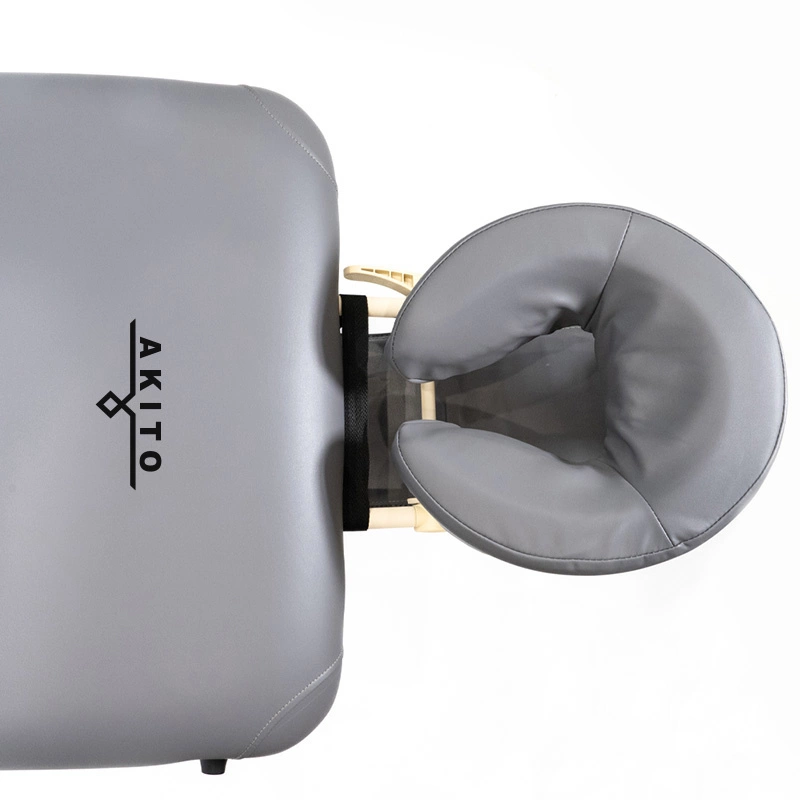 Masa Akito include suprafață frontală pentru brațe, care oferă un acces mai bun la umeri și lateralul pacientului, precum și suport pentru brațe. Este dotată și cu un sprijin pentru cap reglabil 2D, care asigură susținerea coloanei cervicale. |
