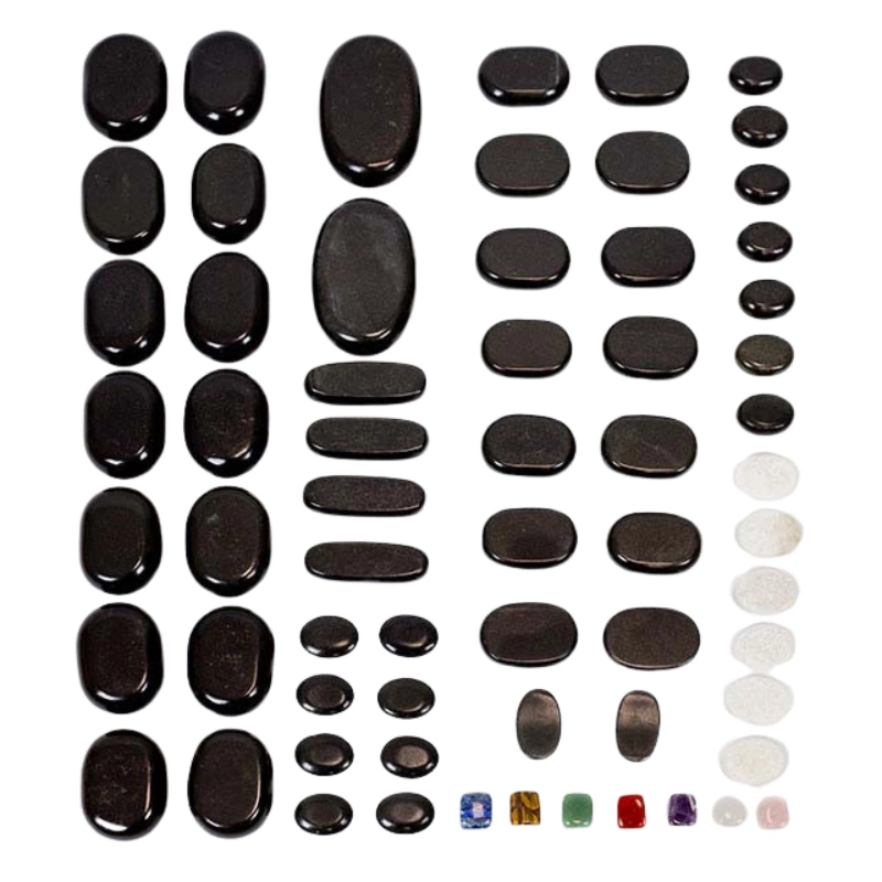 Pietre bazaltice pentru masaj Akito – set de 64 de bucăți