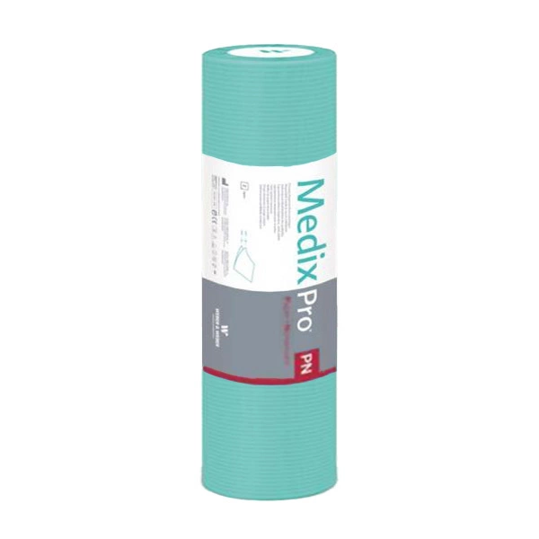 Subsolul medical MedixPro este foarte durabil, ușor și plăcut la atingere, datorită combinației originale dintre un strat subțire de material nețesut și hârtie moale. Materialul este foarte absorbant. Tamponul medical are goluri la fiecare 50 cm, care permit ruperea eficientă a bucăților. Există 50 m de produs pe rolă. Suportul este de unică folosință și poate fi folosit ca cearșaf pentru mese de masaj sau scaune medicale.