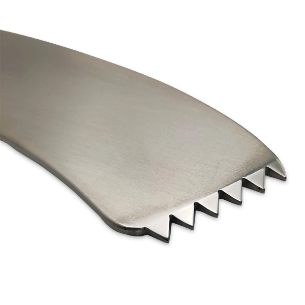 ✅ are 2 capete: unul rotunjit și unul cu margini ascuțite,