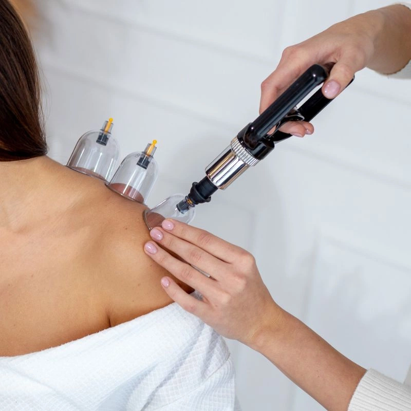 Setul include 20 de cești de vid din plastic, o pompă de mână care permite controlul precis al nivelului de vid, 12 vârfuri magnetice și o valiză practică care facilitează depozitarea și transportul. Acest set este perfect pentru profesioniștii care au nevoie de o soluție mobilă pentru efectuarea terapiei în diferite locuri.
