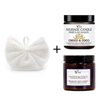 Set VCee - lumânare parfumată Choco & Coco și lumânare de masaj cu spălare corporală exfoliantă